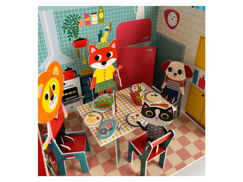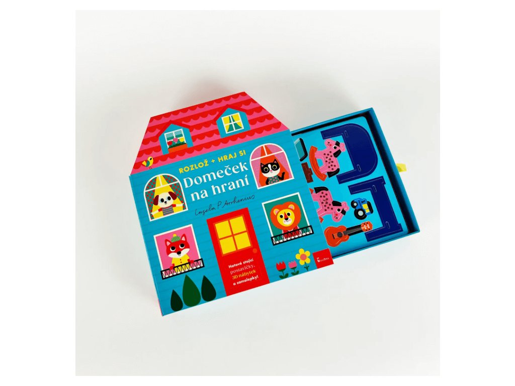 Praktický design umožňuje díly snadno uložit do pevného šuplíku, který je součástí knihy – nic se neztratí a domeček je vždy připravený na další hraní doma i na cestách.