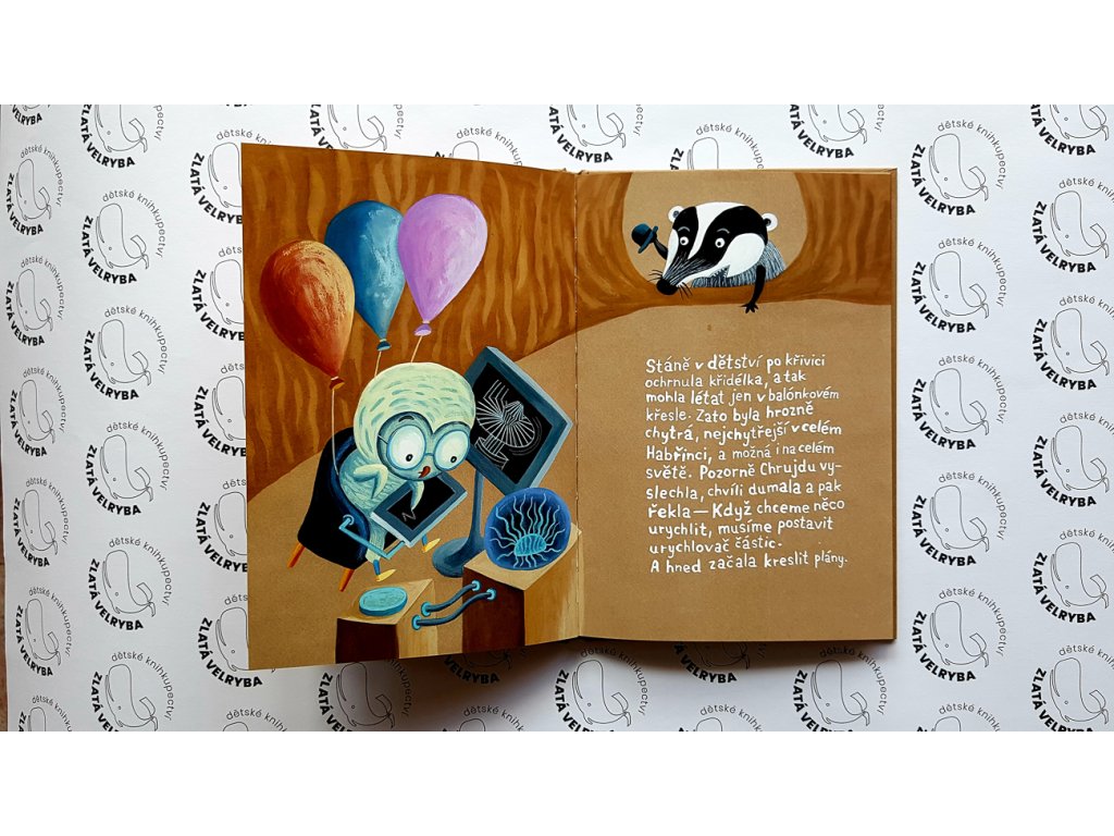 Pokračování dobrodružství jezevce Chrujdy a jeho přátel z lesa Habřince. Chrujda se tentokrát pustí do vynalézání a spolu s kamarádkou, vozíčkářkou sůvičkou Stáňou, sestrojí tajemný urychlovač. Do přístroje ale omylem vleze hlemýžď a jeho urychlení způsobí řadu veselých příhod. Chrujdovi se nakonec všechny zmatky podaří uvést do původního stavu a v lese Habřinci znovu zavládne klid. Napínavý pohádkový příběh přináší malým čtenářům nejen zábavu, ale také poučení, že i bytosti s hedikepem jsou platnými a velmi přínosnými členy společnosti. A snad v nich také podpoří zájem o fyziku, kterou – alespoň podle zkušeností autora – většina školáků k vlastní škodě považuje za nudný předmět.