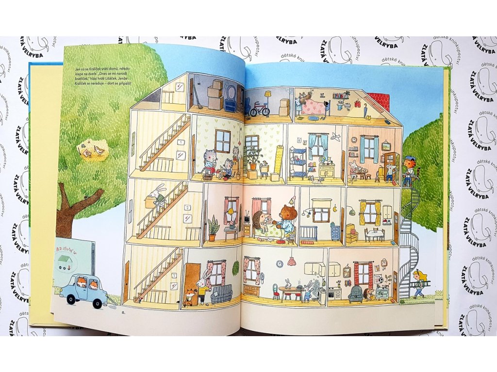 Na každé dvoustraně této půvabné knížky o zvířátkách se dětem otevírá pohled do jednotlivých domácností obytného domu. Od rána až do večera sledujeme osudy malých hrdinů, kteří žijí své běžné životy; občas se sice stane nějaký malý průšvih, ale nakonec všichni drží pospolu a nemůžou je otrávit ani trable s bacily či pohovka zaseknutá na schodišti.